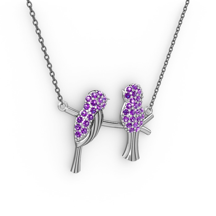 Ametist 18 ayar beyaz altın kolye (40 cm gümüş rolo zincir)