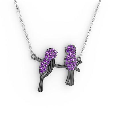 Ametist 925 ayar siyah rodyum kaplama gümüş kolye (40 cm beyaz altın rolo zincir)