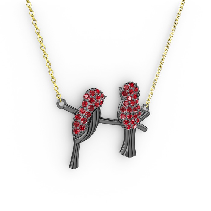 Garnet 925 ayar siyah rodyum kaplama gümüş kolye (40 cm altın rolo zincir)