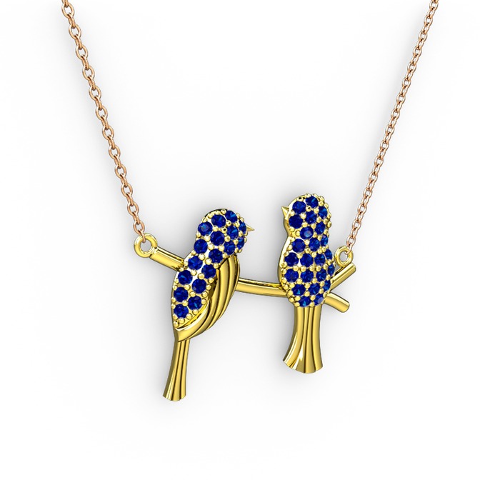 Lab safir 14 ayar altın kolye (40 cm rose altın rolo zincir)
