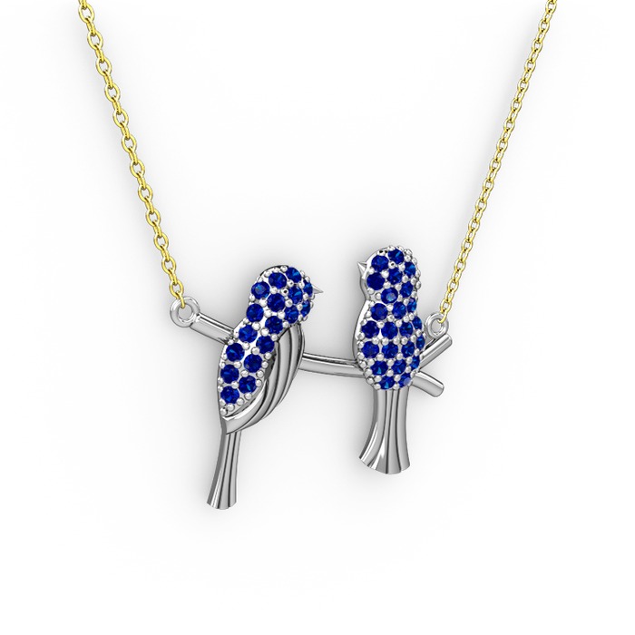 Lab safir 8 ayar beyaz altın kolye (40 cm altın rolo zincir)