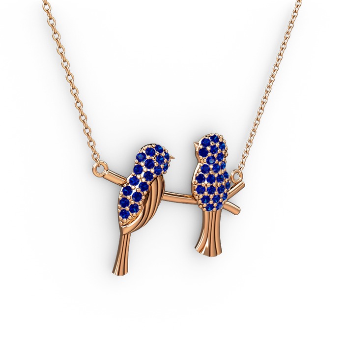 Lab safir 8 ayar rose altın kolye (40 cm rose altın rolo zincir)