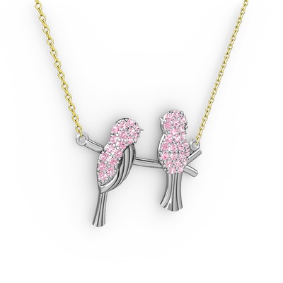 Lora Kuş Kolye - Pembe kuvars 925 ayar gümüş kolye (40 cm altın rolo zincir)