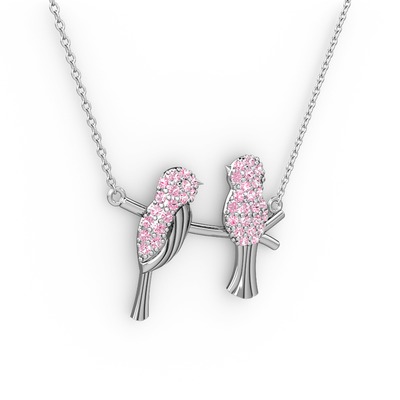 Pembe kuvars 925 ayar gümüş kolye (40 cm beyaz altın rolo zincir)