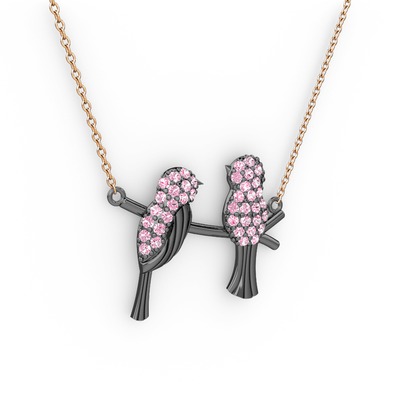 Pembe kuvars 925 ayar siyah rodyum kaplama gümüş kolye (40 cm rose altın rolo zincir)