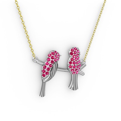 Rodolit garnet 18 ayar beyaz altın kolye (40 cm altın rolo zincir)