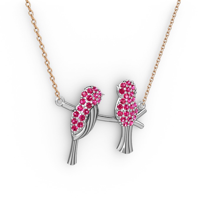 Rodolit garnet 18 ayar beyaz altın kolye (40 cm rose altın rolo zincir)