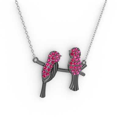 Rodolit garnet 925 ayar siyah rodyum kaplama gümüş kolye (40 cm beyaz altın rolo zincir)