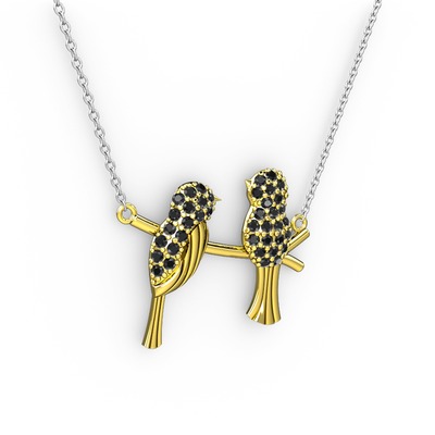 Siyah zirkon 14 ayar altın kolye (40 cm gümüş rolo zincir)