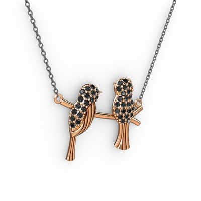 Siyah zirkon 14 ayar rose altın kolye (40 cm gümüş rolo zincir)
