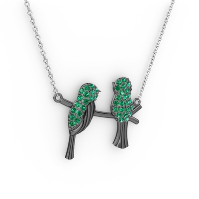 Yeşil kuvars 925 ayar siyah rodyum kaplama gümüş kolye (40 cm gümüş rolo zincir)