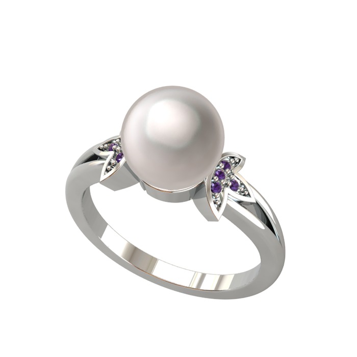 Inci ve ametist 18 ayar beyaz altın yüzük