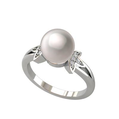 Inci ve beyaz zirkon 18 ayar beyaz altın yüzük