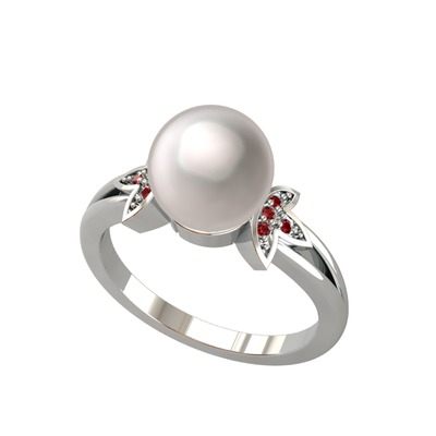 Inci ve garnet 14 ayar beyaz altın yüzük