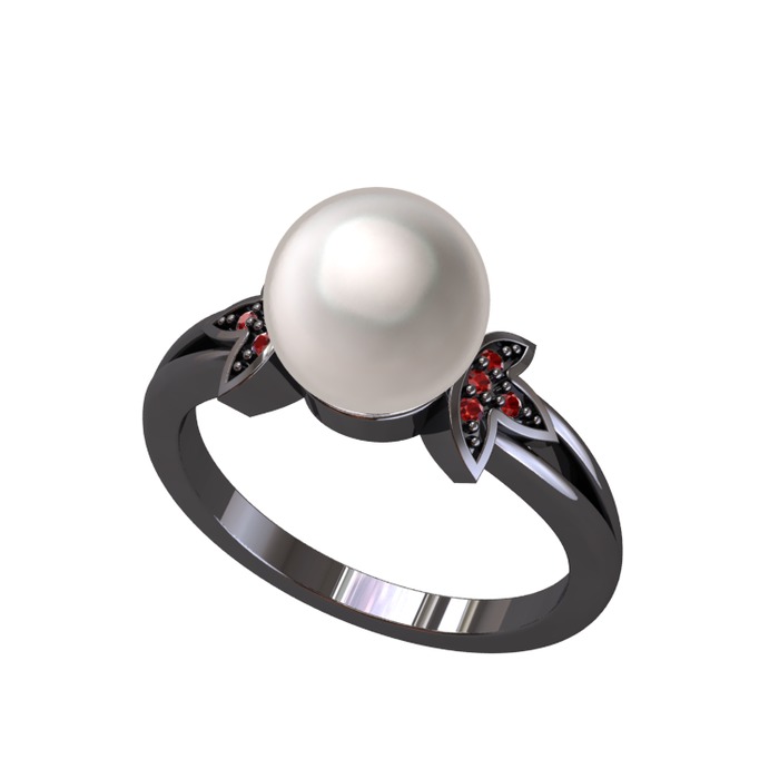 Inci ve garnet 925 ayar siyah rodyum kaplama gümüş yüzük