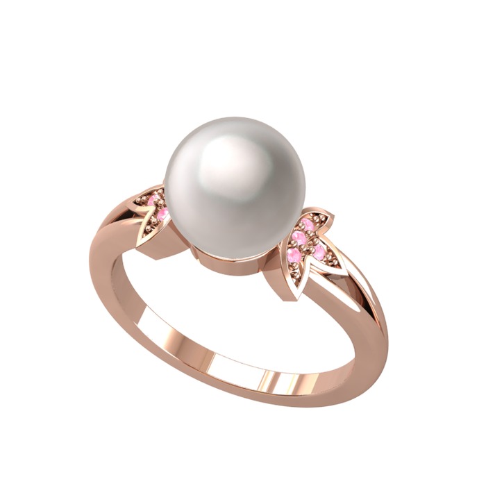 Inci ve pembe kuvars 925 ayar rose altın kaplama gümüş yüzük