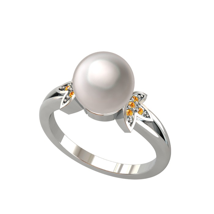 Inci ve sitrin 14 ayar beyaz altın yüzük