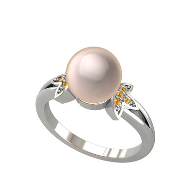 Pembe inci ve sitrin 8 ayar beyaz altın yüzük