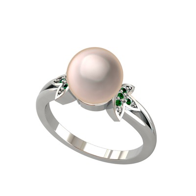 Pembe inci ve yeşil kuvars 14 ayar beyaz altın yüzük
