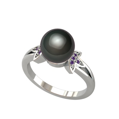 Siyah inci ve ametist 925 ayar gümüş yüzük