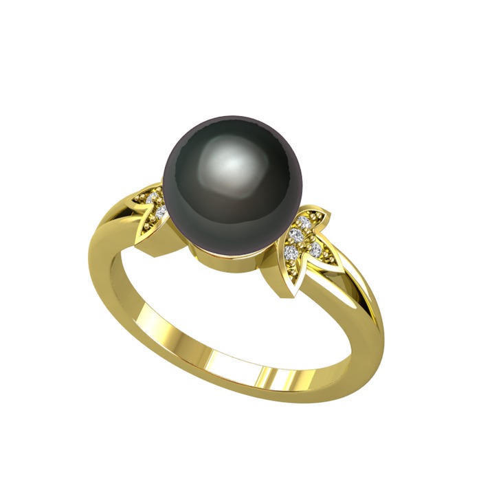 Siyah inci ve beyaz zirkon 925 ayar altın kaplama gümüş yüzük