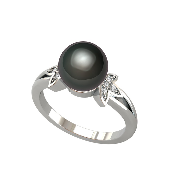 Siyah inci ve swarovski 8 ayar beyaz altın yüzük