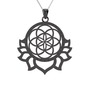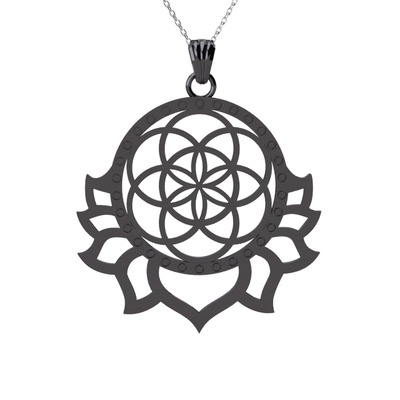 Lotus Yaşam Tohumu Kolye - 925 ayar siyah rodyum kaplama gümüş kolye (40 cm beyaz altın rolo zincir)