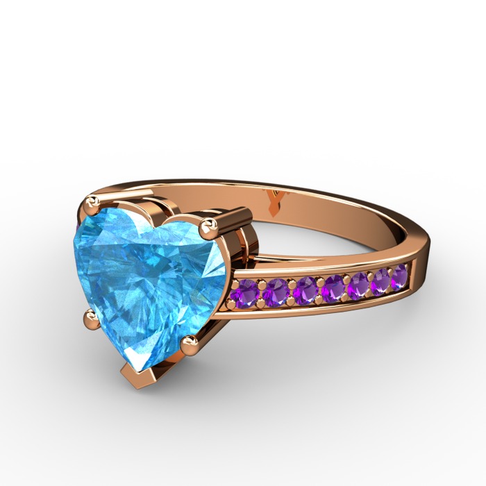 Akuamarin ve ametist 18 ayar rose altın yüzük
