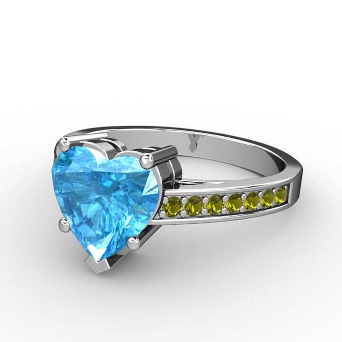 Akuamarin ve peridot 8 ayar beyaz altın yüzük