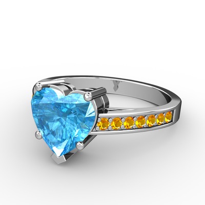 Akuamarin ve sitrin 18 ayar beyaz altın yüzük