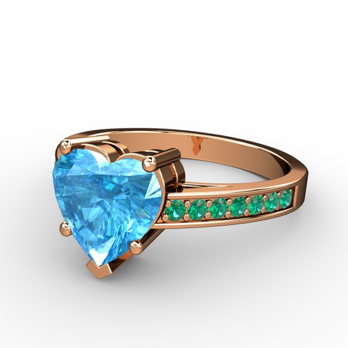 Akuamarin ve yeşil kuvars 18 ayar rose altın yüzük