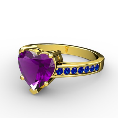 Ametist ve lab safir 925 ayar altın kaplama gümüş yüzük