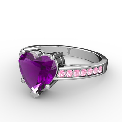 Ametist ve pembe kuvars 925 ayar gümüş yüzük