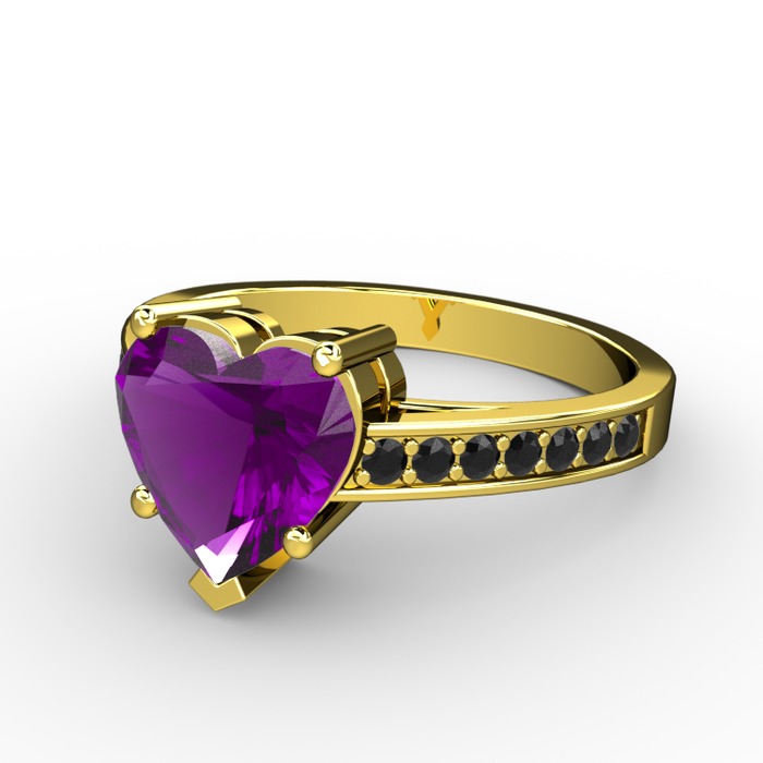 Ametist ve siyah zirkon 18 ayar altın yüzük