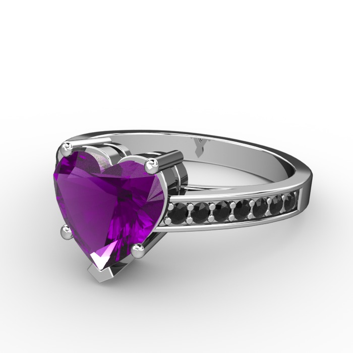 Ametist ve siyah zirkon 8 ayar beyaz altın yüzük