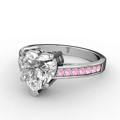 Beyaz zirkon ve pembe kuvars 8 ayar beyaz altın yüzük