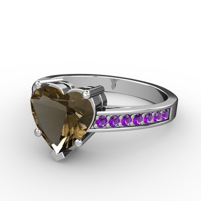 Dumanlı kuvars ve ametist 18 ayar beyaz altın yüzük