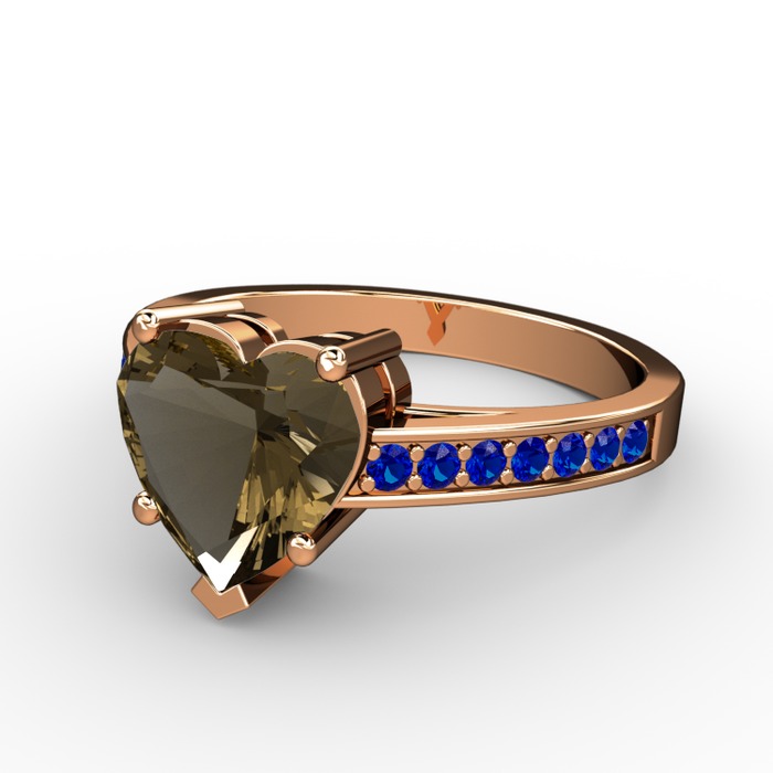 Dumanlı kuvars ve lab safir 8 ayar rose altın yüzük