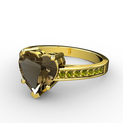 Dumanlı kuvars ve peridot 18 ayar altın yüzük
