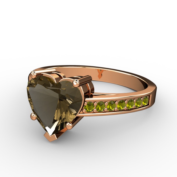 Dumanlı kuvars ve peridot 18 ayar rose altın yüzük