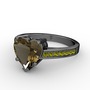 Dumanlı kuvars ve peridot 925 ayar siyah rodyum kaplama gümüş yüzük