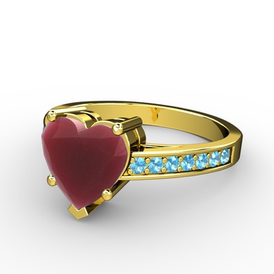 Kök yakut ve akuamarin 18 ayar altın yüzük