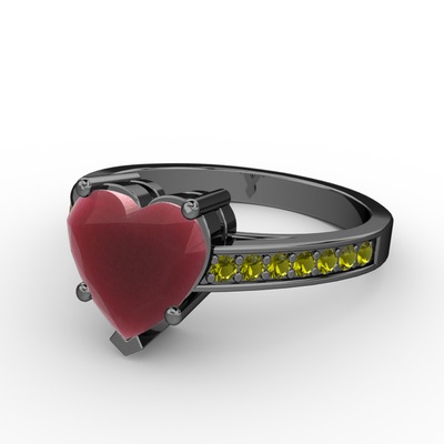 Kök yakut ve peridot 925 ayar siyah rodyum kaplama gümüş yüzük