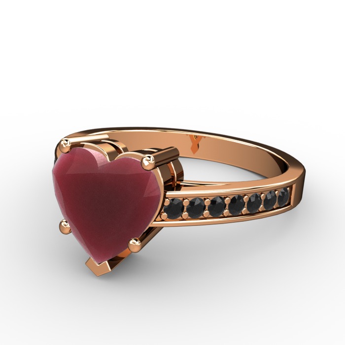 Kök yakut ve siyah zirkon 925 ayar rose altın kaplama gümüş yüzük