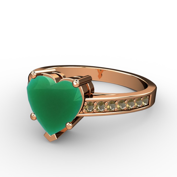 Kök zümrüt ve dumanlı kuvars 14 ayar rose altın yüzük