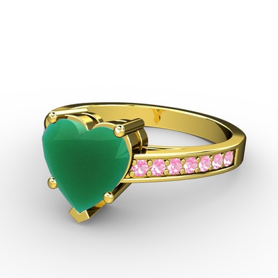 Kök zümrüt ve pembe kuvars 18 ayar altın yüzük