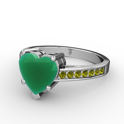 Kök zümrüt ve peridot 14 ayar beyaz altın yüzük