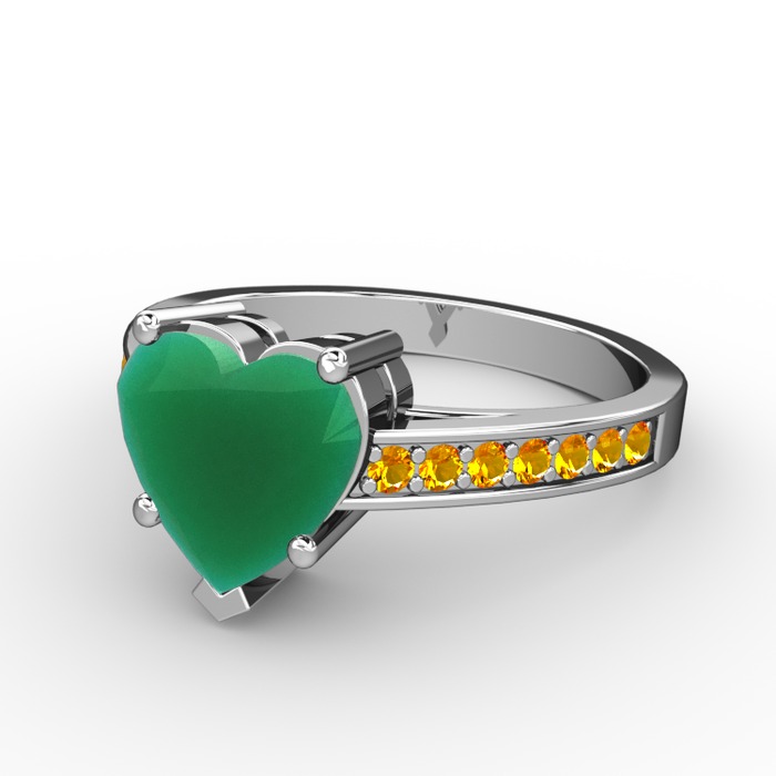 Kök zümrüt ve sitrin 8 ayar beyaz altın yüzük
