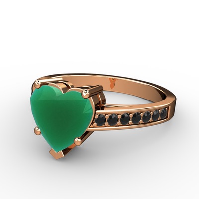 Kök zümrüt ve siyah zirkon 18 ayar rose altın yüzük