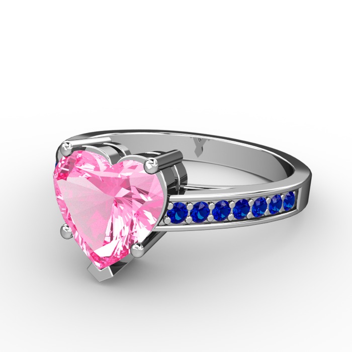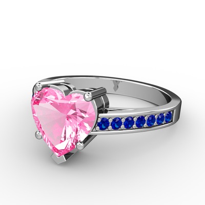 Pembe kuvars ve lab safir 18 ayar beyaz altın yüzük